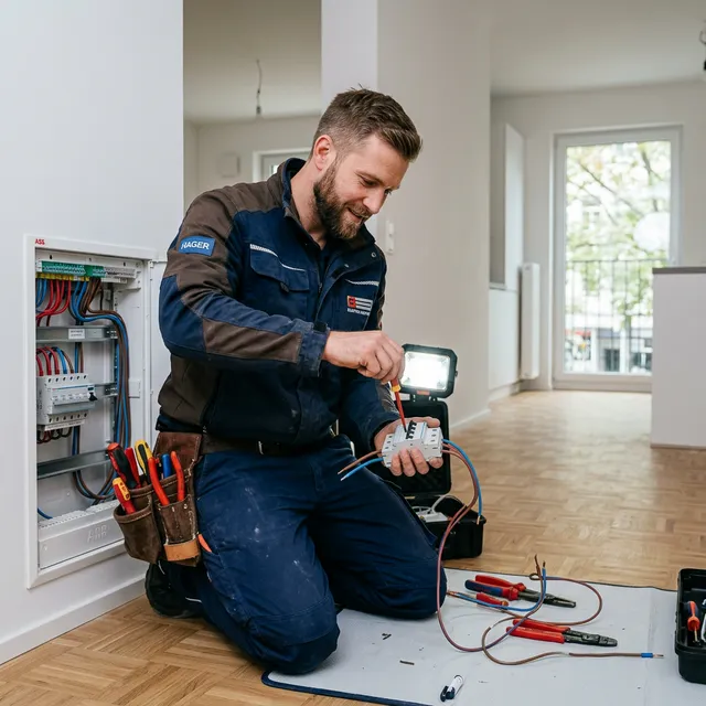 Ein Elektriker — offiziell Elektroniker für Energie- und Gebäudetechnik, früher Elektroinstallateur genannt — übernimmt alle Arbeiten an Ihrer elektrischen Anlage. Typische Leistungen umfassen den Einbau von Steckdosen, Schaltern, Verteilerkästen und Sicherungskästen, die Installation von Beleuchtungsanlagen und Smarthome-Systemen sowie Prüf- und Wartungsarbeiten.